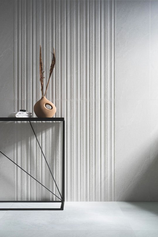 Alchemy Pearl is inspired by Ocean Black slate’s select appearance, in this case in an eye-catching, elegant luminous shade of white. Its vaporous appearance is perfect for more spacious settings, while its veined texture adds a natural beauty and chic touch of sophistication. Alchemy Iron is inspired by Grigio Soveraia: a striking, highly-prized grey marble, originally from the Middle East. Unique personality is afforded by the delicate white veins that streak its surface. Alchemy Iron’s design brings an eye-catching modern appeal to settings of differing kinds.
